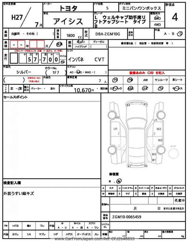Toyota Isis 2015 for sale in Zambia (Zmw. 161,267)