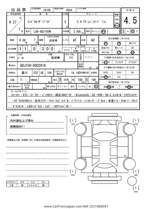 Toyota Land Cruiser Prado 2015 for sale in Zambia (Zmw. 529,549)