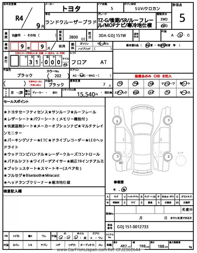 Toyota Land Cruiser Prado 2022 for sale in Zambia (Zmw. 924,967)