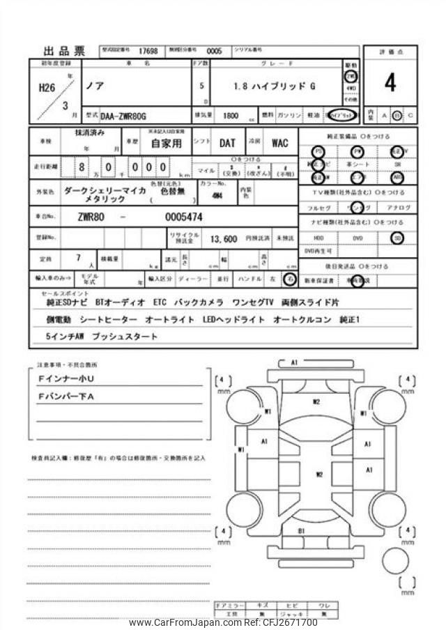 Toyota Noah 2014 for sale in Zambia (Zmw. 244,240)