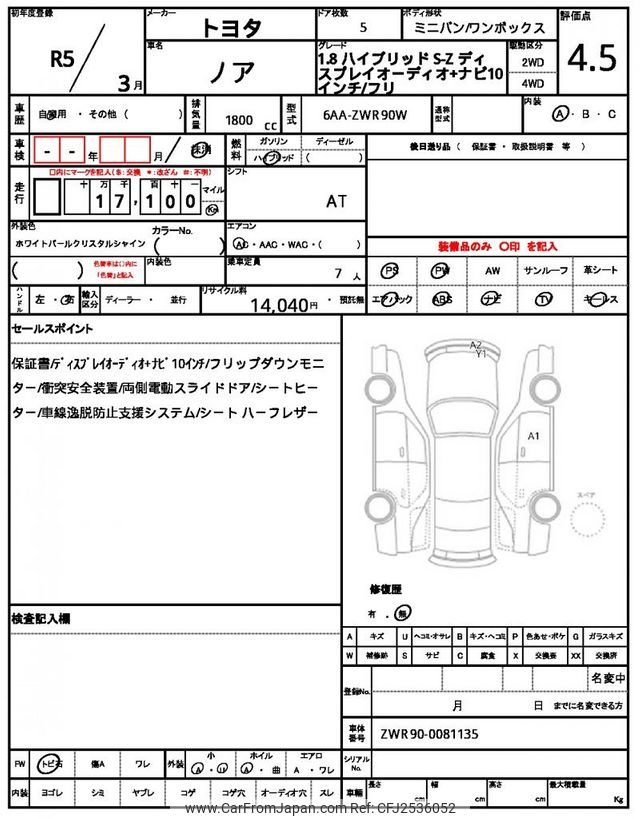 Toyota Noah 2023 for sale in Zambia (Zmw. 654,671)