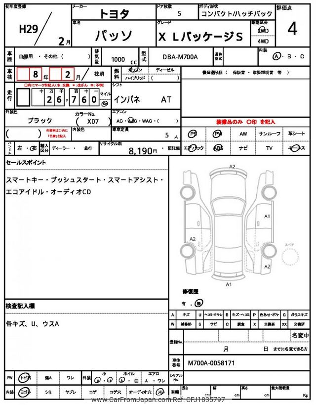 Toyota Passo 2017 for sale in Zambia (Zmw. 144,924)