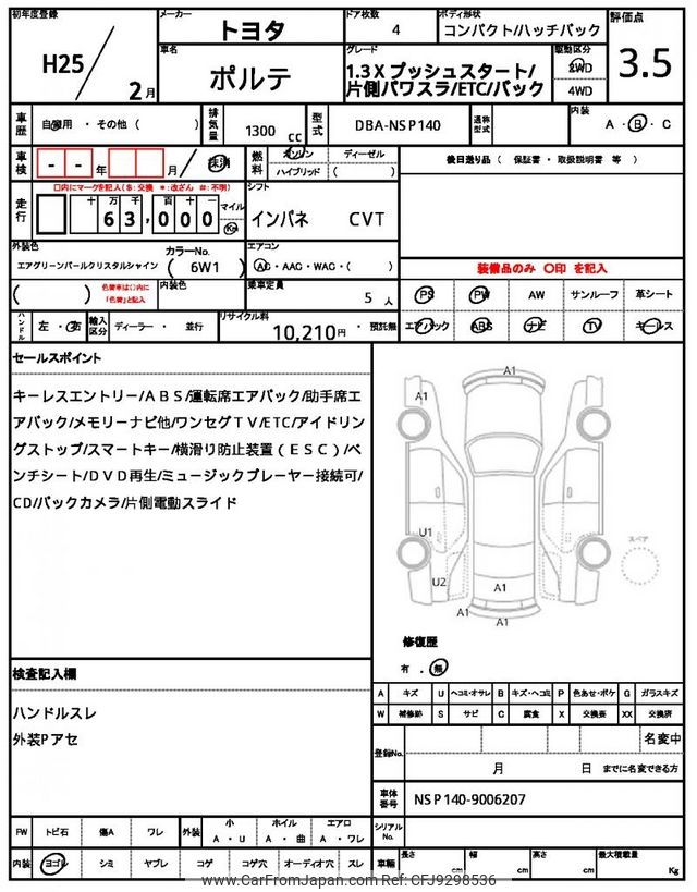 Toyota Porte 2013 for sale in Zambia (Zmw. 104,110)
