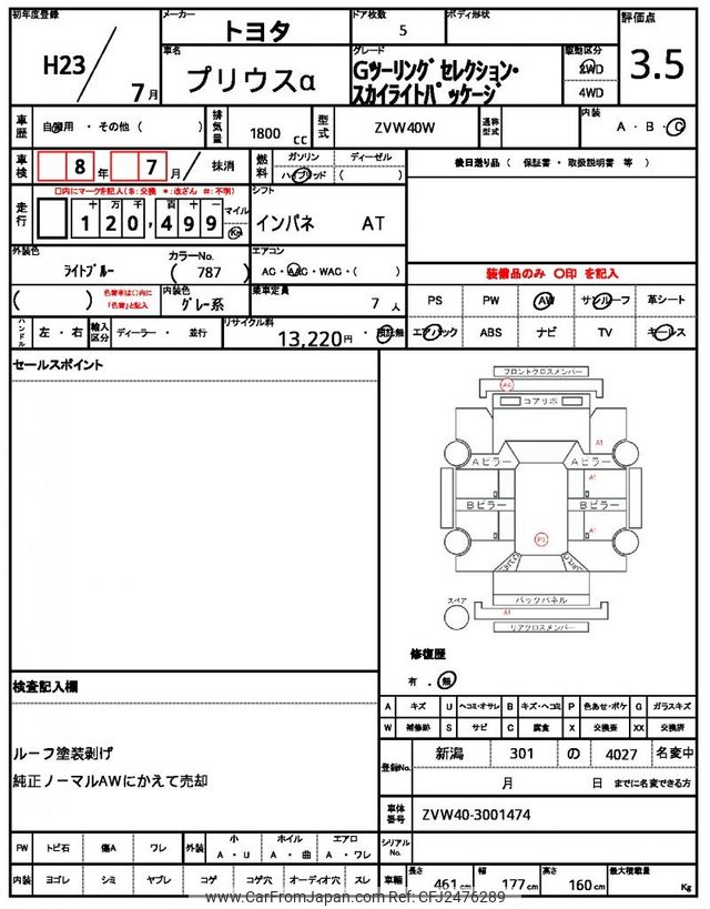 Toyota Prius α 2011 for sale in Zambia (Zmw. 132,401)