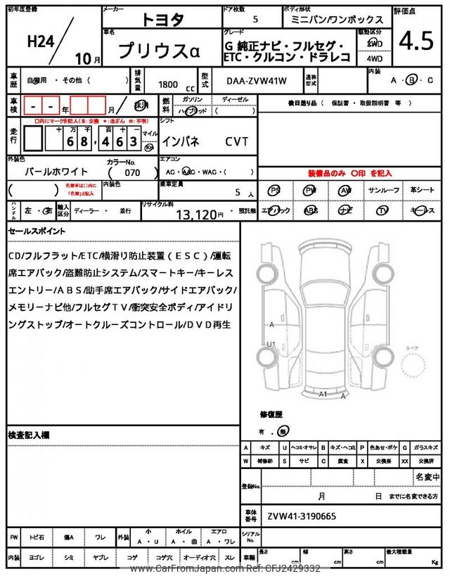 Toyota Prius α 2012 for sale in Zambia (Zmw. 195,720)
