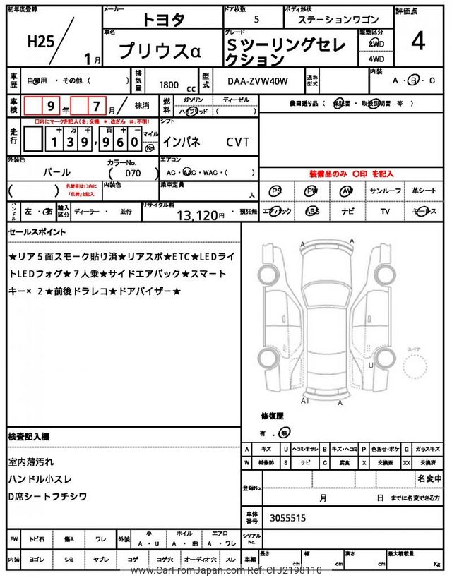 Toyota Prius α 2013 for sale in Zambia (Zmw. 144,470)