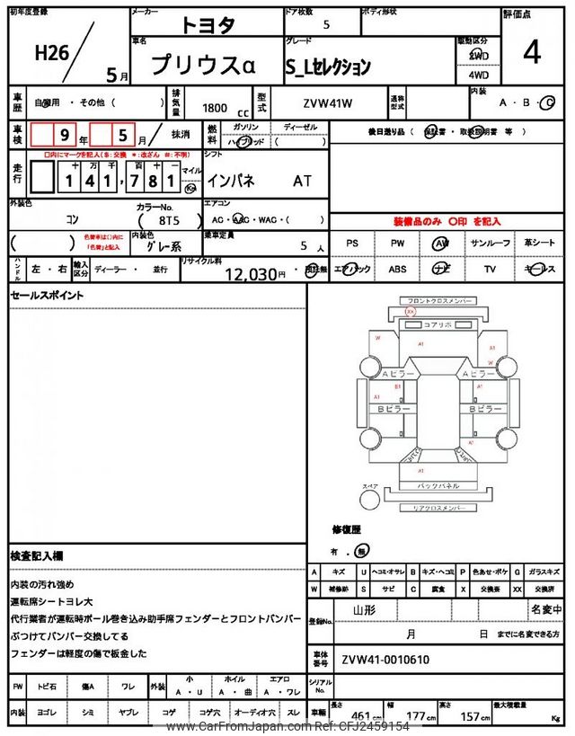 Toyota Prius α 2014 for sale in Zambia (Zmw. 133,573)