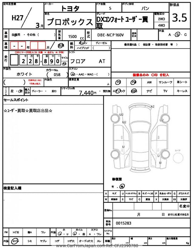 Toyota Probox 2015 for sale in Zambia (Zmw. 163,297)