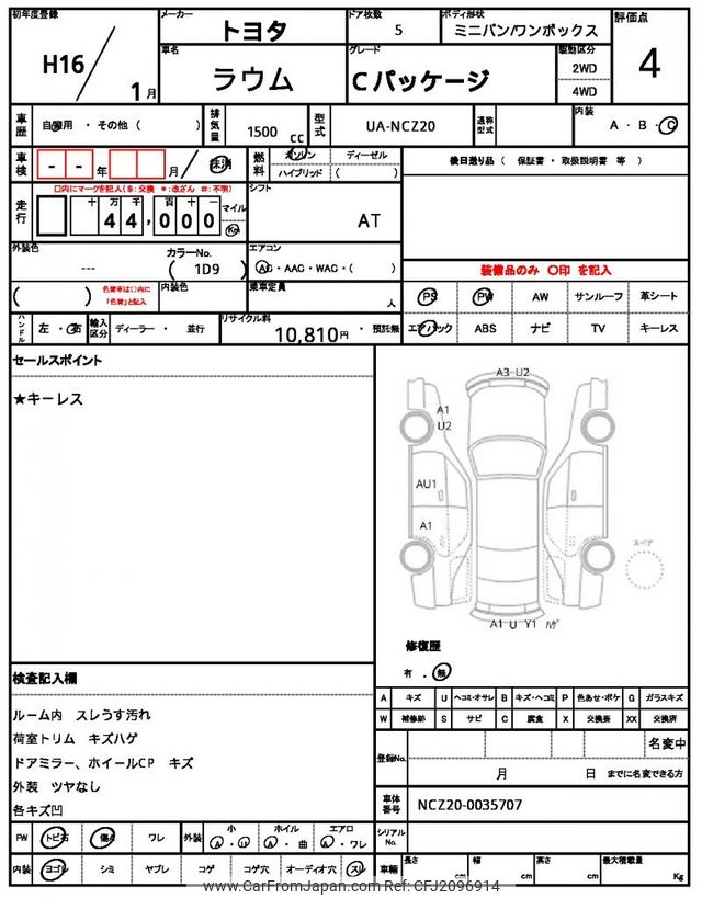 Toyota Raum 2004 for sale in Zambia (Zmw. 122,544)