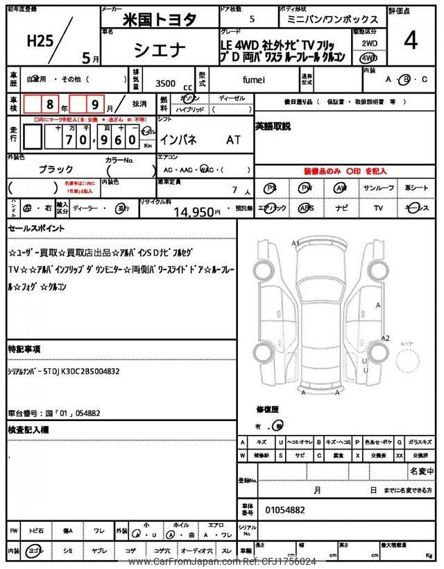 Toyota Sienna 2013 for sale in Zambia (Zmw. 368,286)