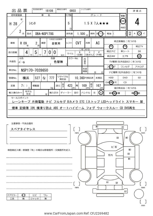 Toyota Sienta 2016 for sale in Zambia (Zmw. 216,000)