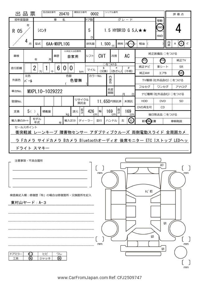 Toyota Sienta 2023 for sale in Zambia (Zmw. 412,647)