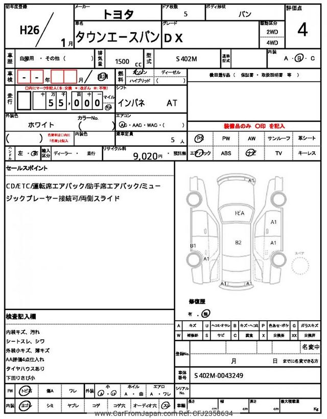 Toyota Townace Van 2014 for sale in Zambia (Zmw. 209,520)