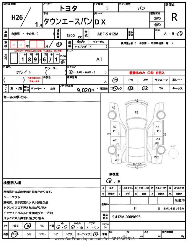 Toyota Townace Van 2014 for sale in Zambia (Zmw. 100,448)