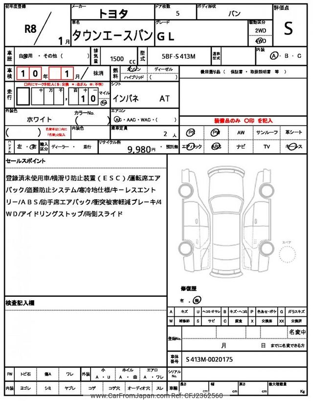 Toyota Townace Van 2026 for sale in Zambia (Zmw. 393,233)