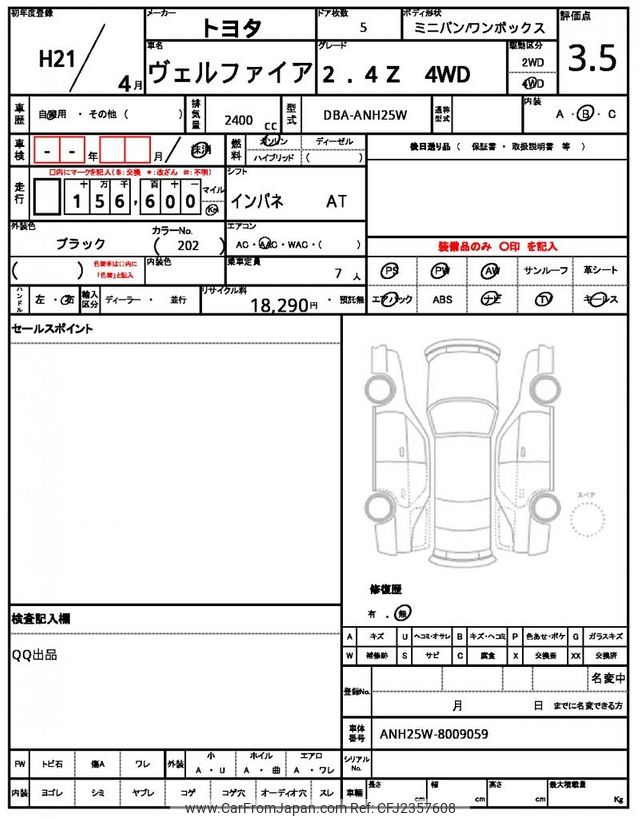 Toyota Vellfire 2009 for sale in Zambia (Zmw. 221,653)
