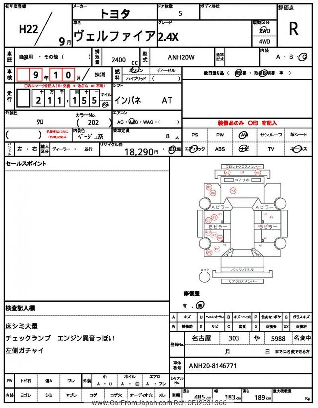 Toyota Vellfire 2010 for sale in Zambia (Zmw. 120,496)