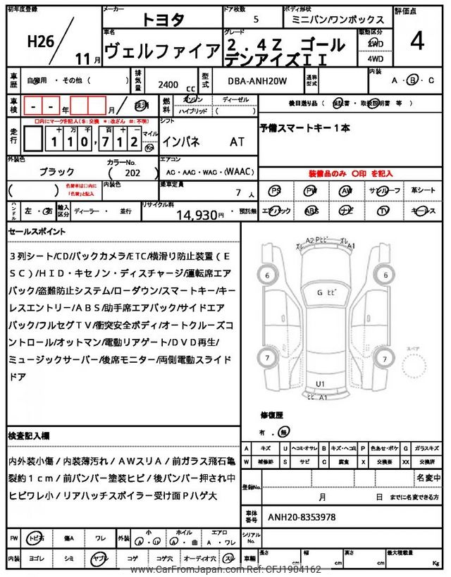 Toyota Vellfire 2014 for sale in Zambia (Zmw. 203,875)