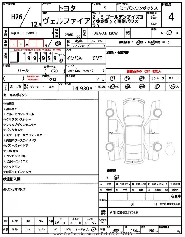 Toyota Vellfire 2014 for sale in Zambia (Zmw. 209,523)