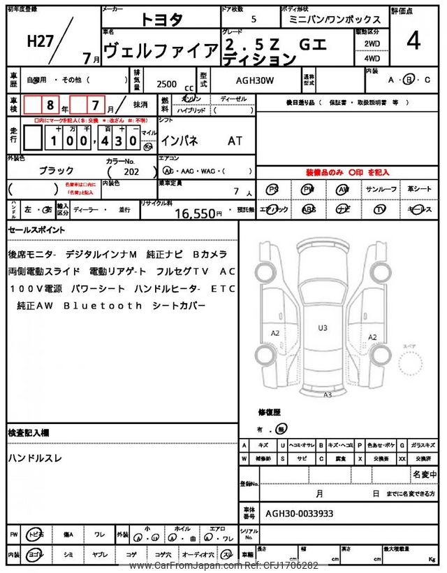 Toyota Vellfire 2015 for sale in Zambia (Zmw. 376,326)