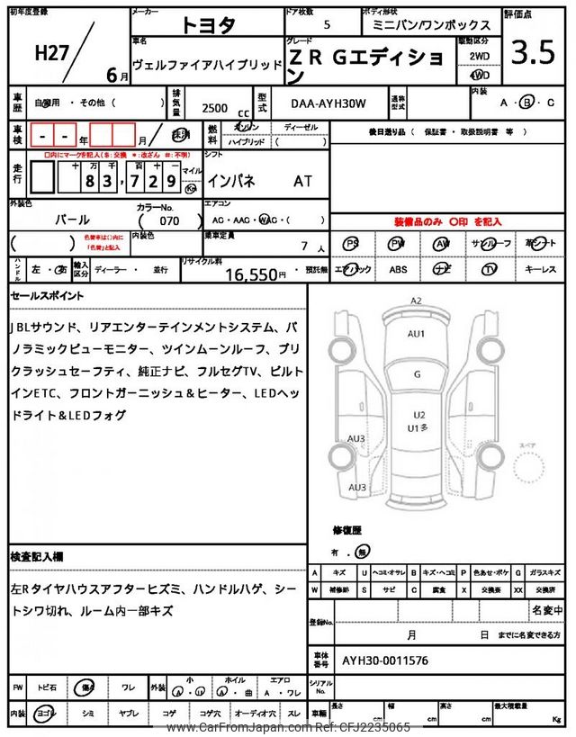 Toyota Vellfire 2015 for sale in Zambia (Zmw. 416,760)