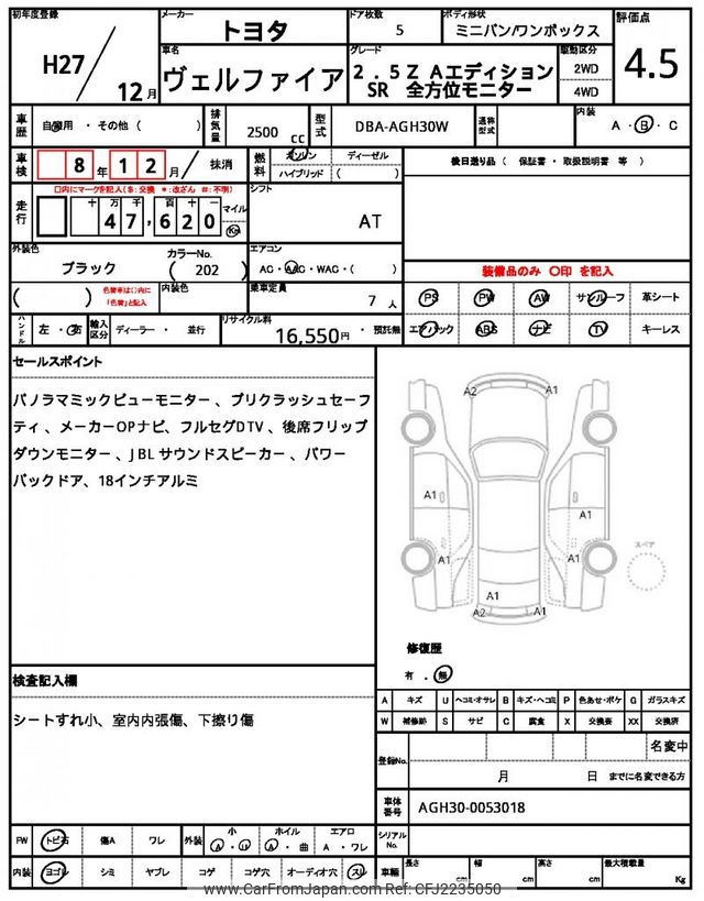 Toyota Vellfire 2015 for sale in Zambia (Zmw. 454,342)