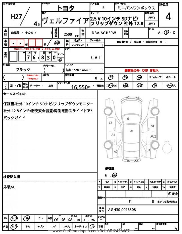 Toyota Vellfire 2015 for sale in Zambia (Zmw. 368,107)