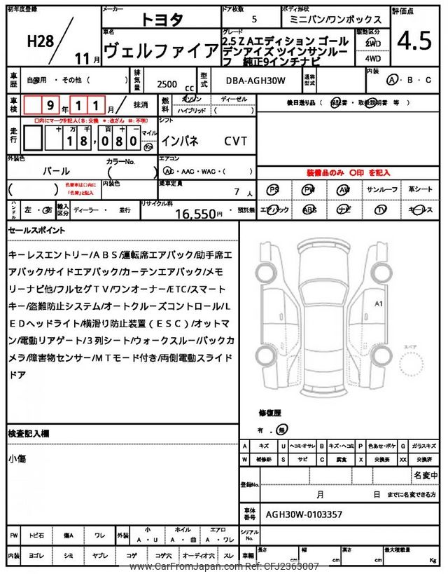 Toyota Vellfire 2016 for sale in Zambia (Zmw. 506,034)
