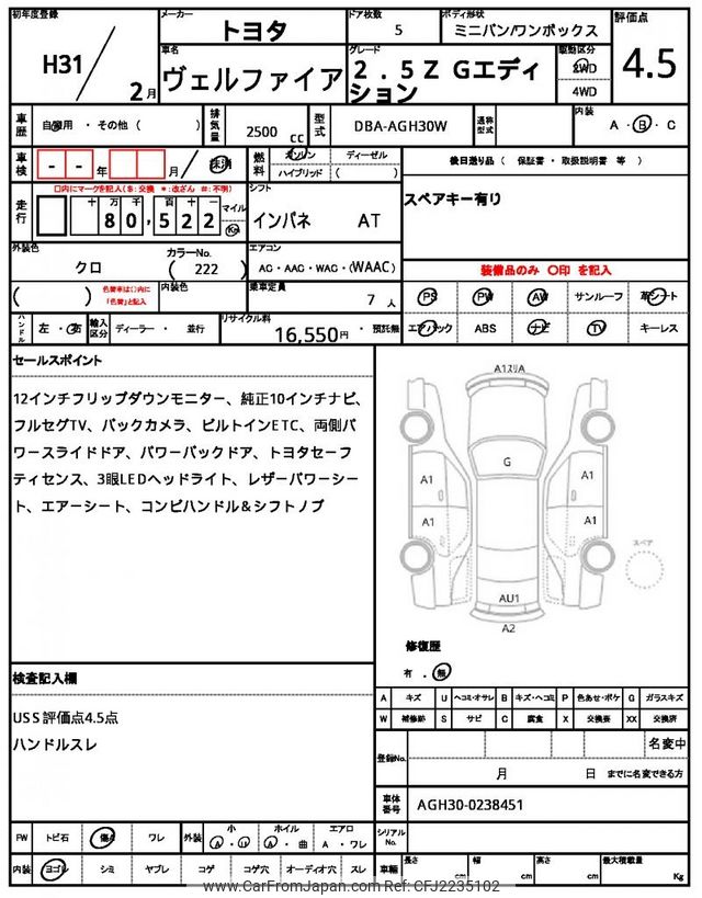 Toyota Vellfire 2019 for sale in Zambia (Zmw. 476,867)