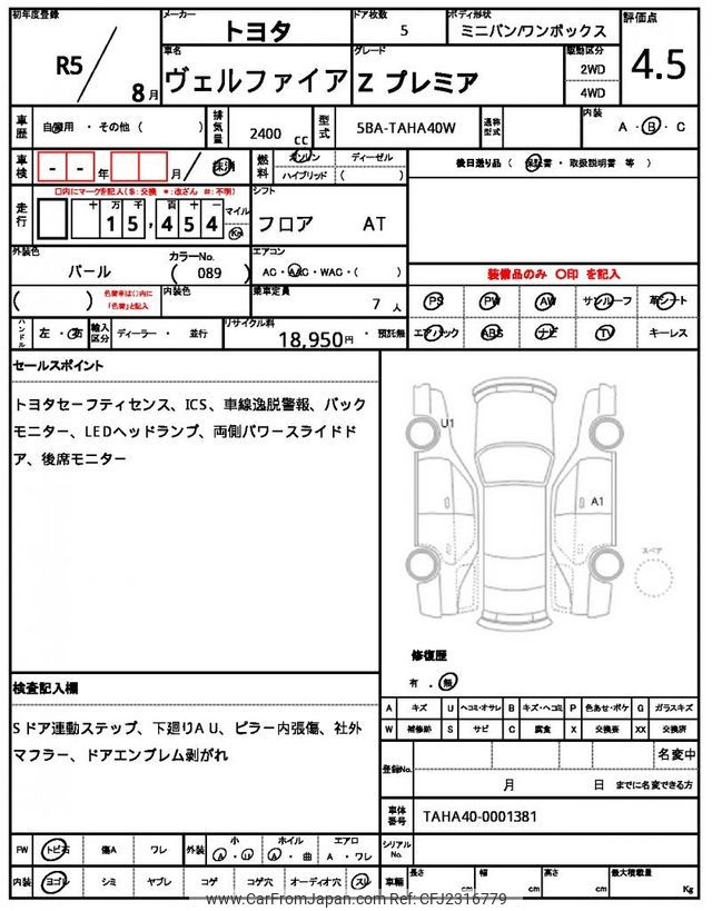 Toyota Vellfire 2023 for sale in Zambia (Zmw. 1,158,462)