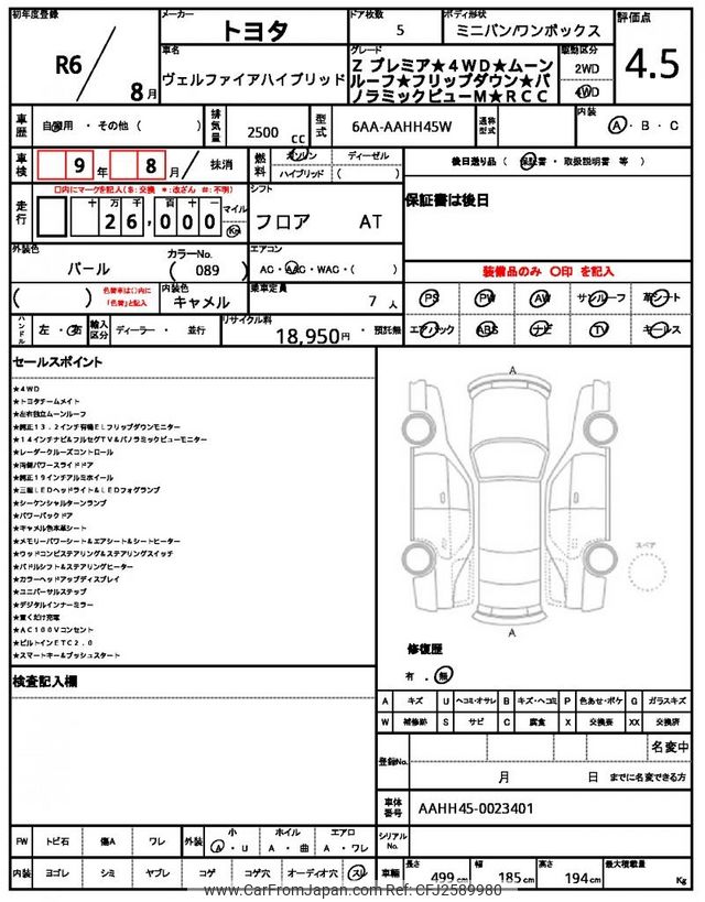 Toyota Vellfire 2024 for sale in Zambia (Zmw. 982,636)