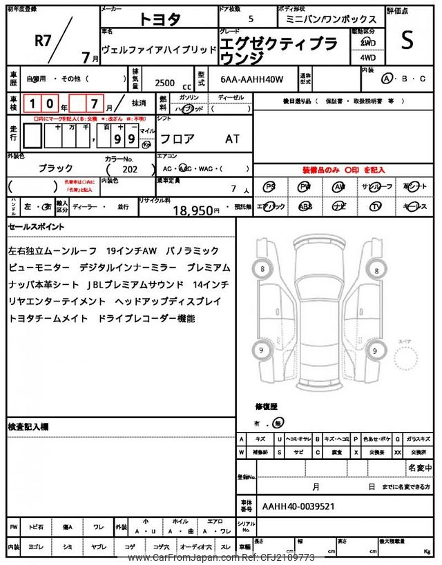 Toyota Vellfire 2025 for sale in Zambia (Zmw. 1,399,044)