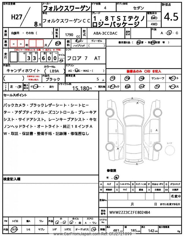 Volkswagen CC 2015 for sale in Zambia (Zmw. 331,561)