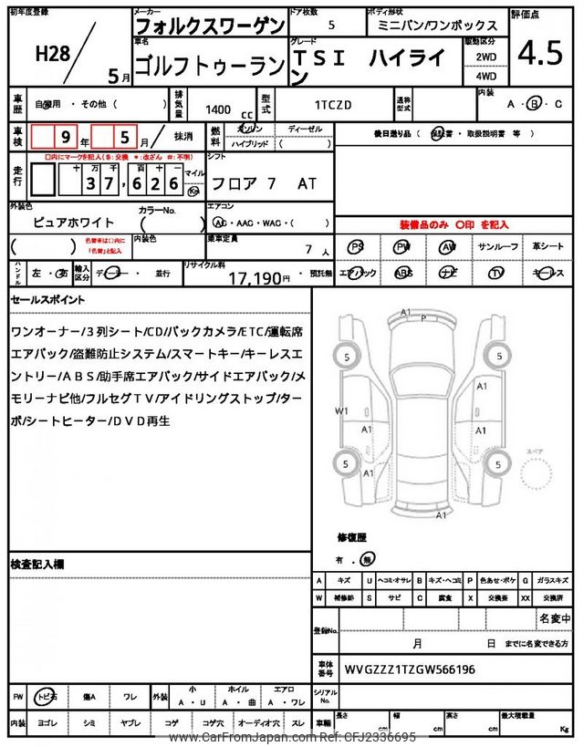 Volkswagen Golf Touran 2016 for sale in Zambia (Zmw. 325,884)