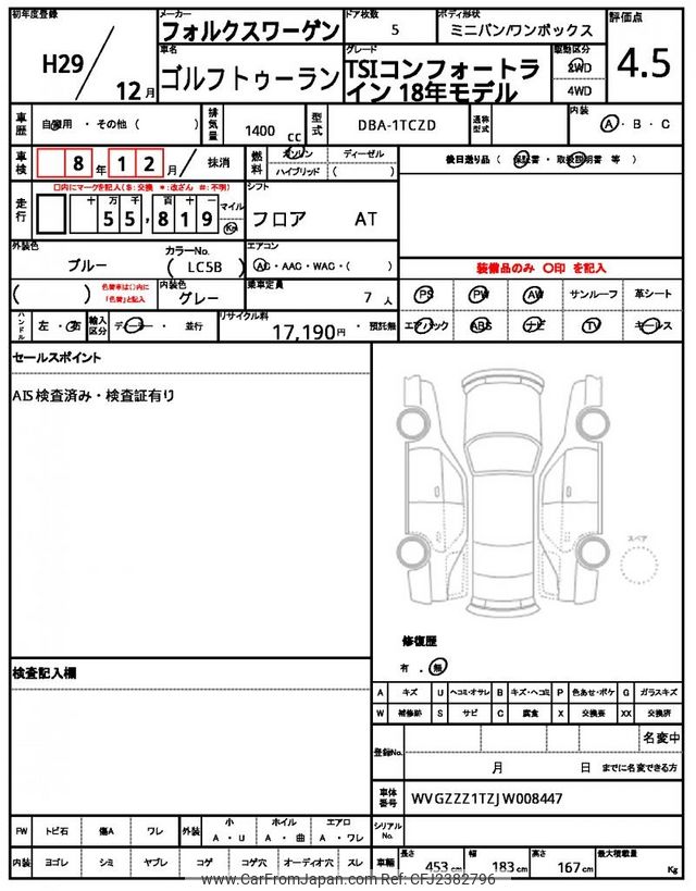 Volkswagen Golf Touran 2017 for sale in Zambia (Zmw. 275,972)