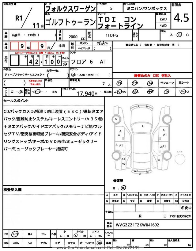Volkswagen Golf Touran 2019 for sale in Zambia (Zmw. 373,185)